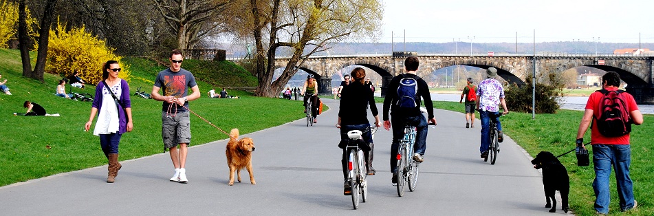 Nos fins de semana, suas margens com ciclovia e uma extensa área gramada viram ponto de encontro dos alemães.