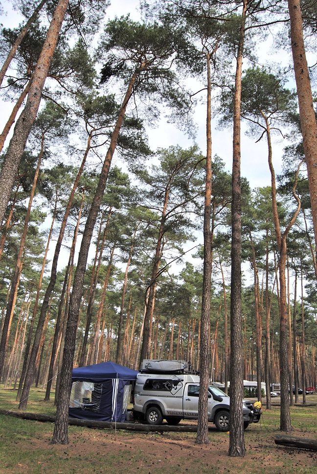 ... E acampamos na zona rural de Berlim, em um lindo lago, com árvores altíssimas.