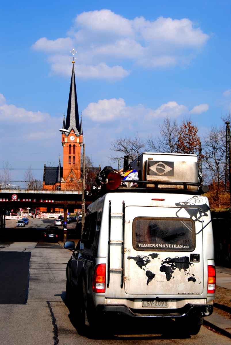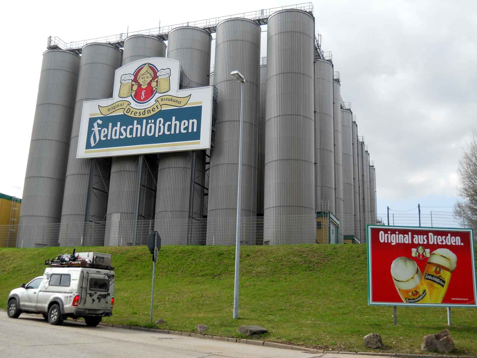 Passamos em frente da fábrica desta cerveja, em Dresden, só para tirar uma foto do nosso guerreiro incansável Farofamóvel!