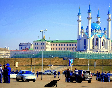 Passamos por Kazan, com seu Kremlin, e uma atípica mesquita.