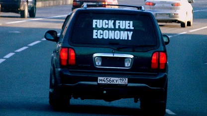 Muitos carros de polícia, de mentira, ficam à beira da estrada só para os motoristas maneirarem na velocidade.