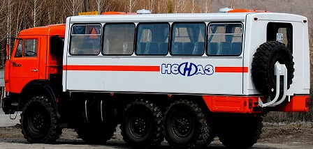 O lendário caminhão russo Kamaz, modelo que atende a equipe de apoio no Paris-Dakar, é o transporte coletivo dos russos.