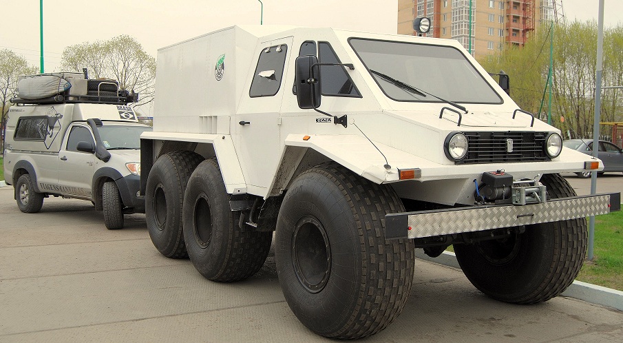 -Só tem um veículo deste na Rússia inteira! Uso para caçar! Atravessa qualquer rio, qualquer espessura de neve e lama... Huahauha... Lama é o menor dos meus problemas!
