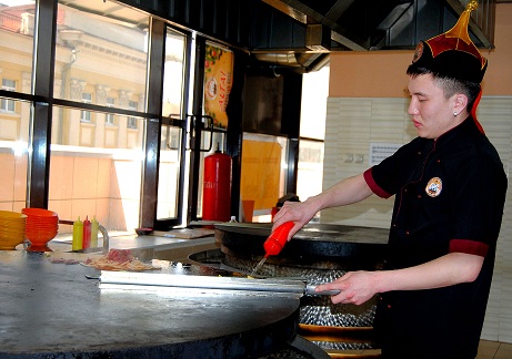 Outro momento culinário marcante foi quando passamos uns dias próximos à fronteira da Mongólia e aproveitamos para conhecer um pouco dos que eles comem por lá. Encontramos na regiao de Irkutsk um restaurante de comida típica mongol e nos acabamos de comer.