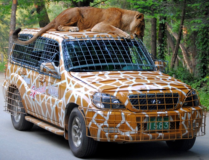 Safáris com animais selvagens como leões...