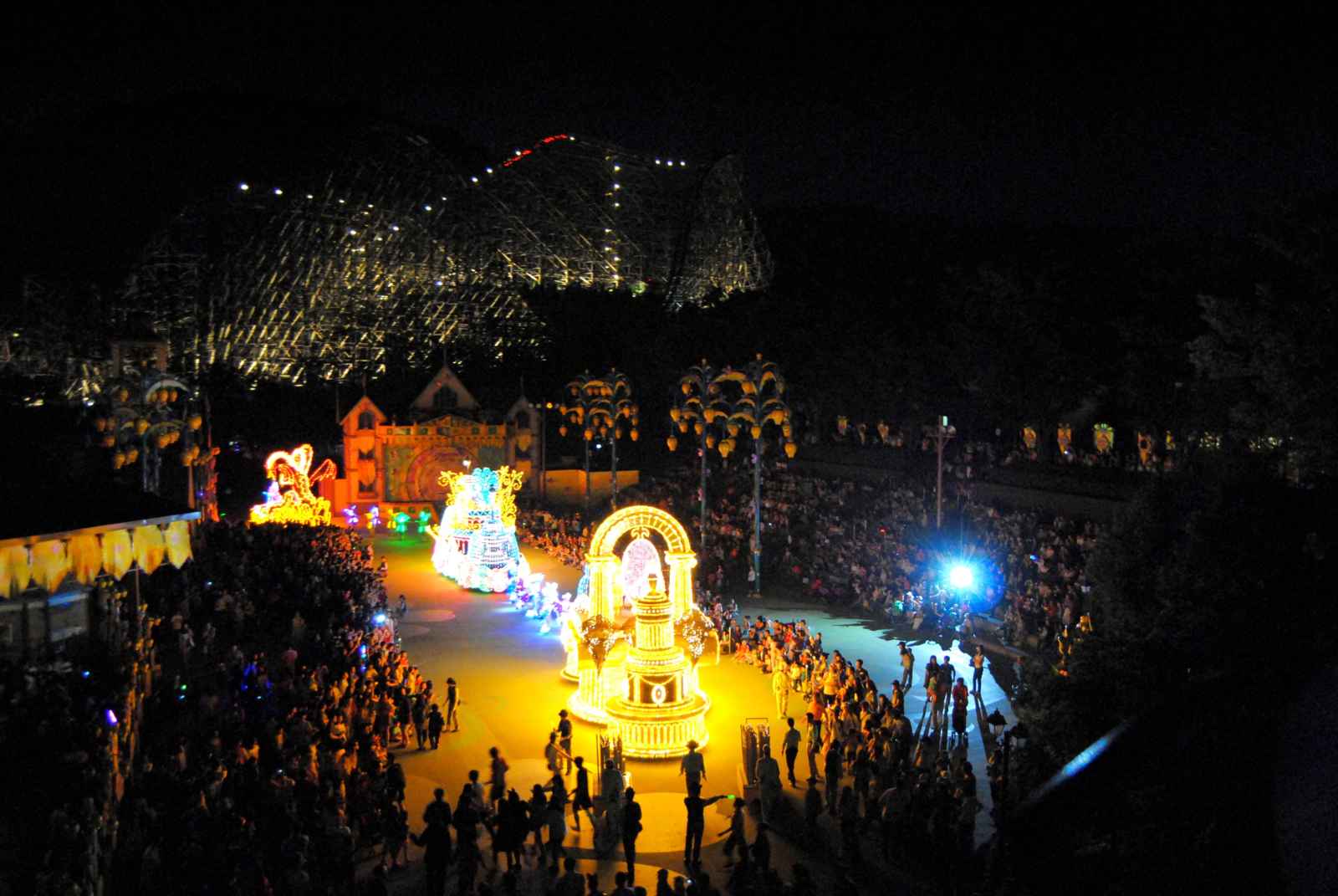 Tem até um iluminado desfile noturno.