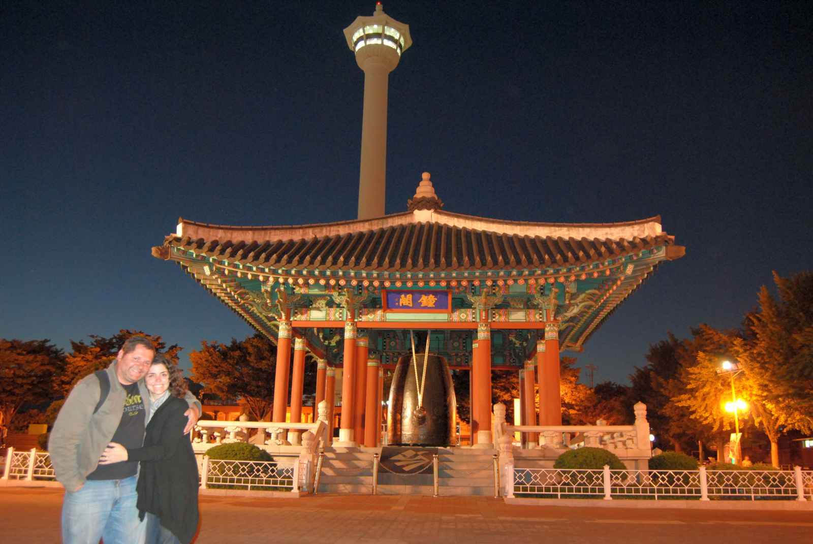 Subimos a torre de Busan, à noite, e vimos a cidade toda lá de cima.