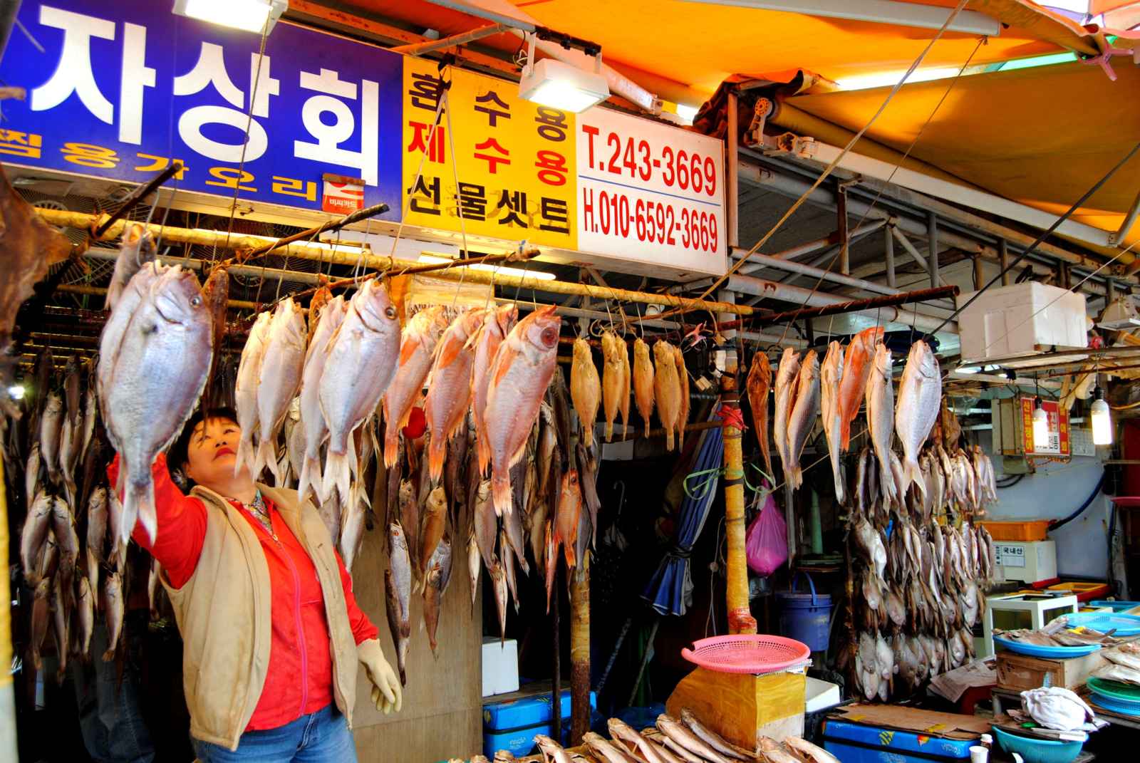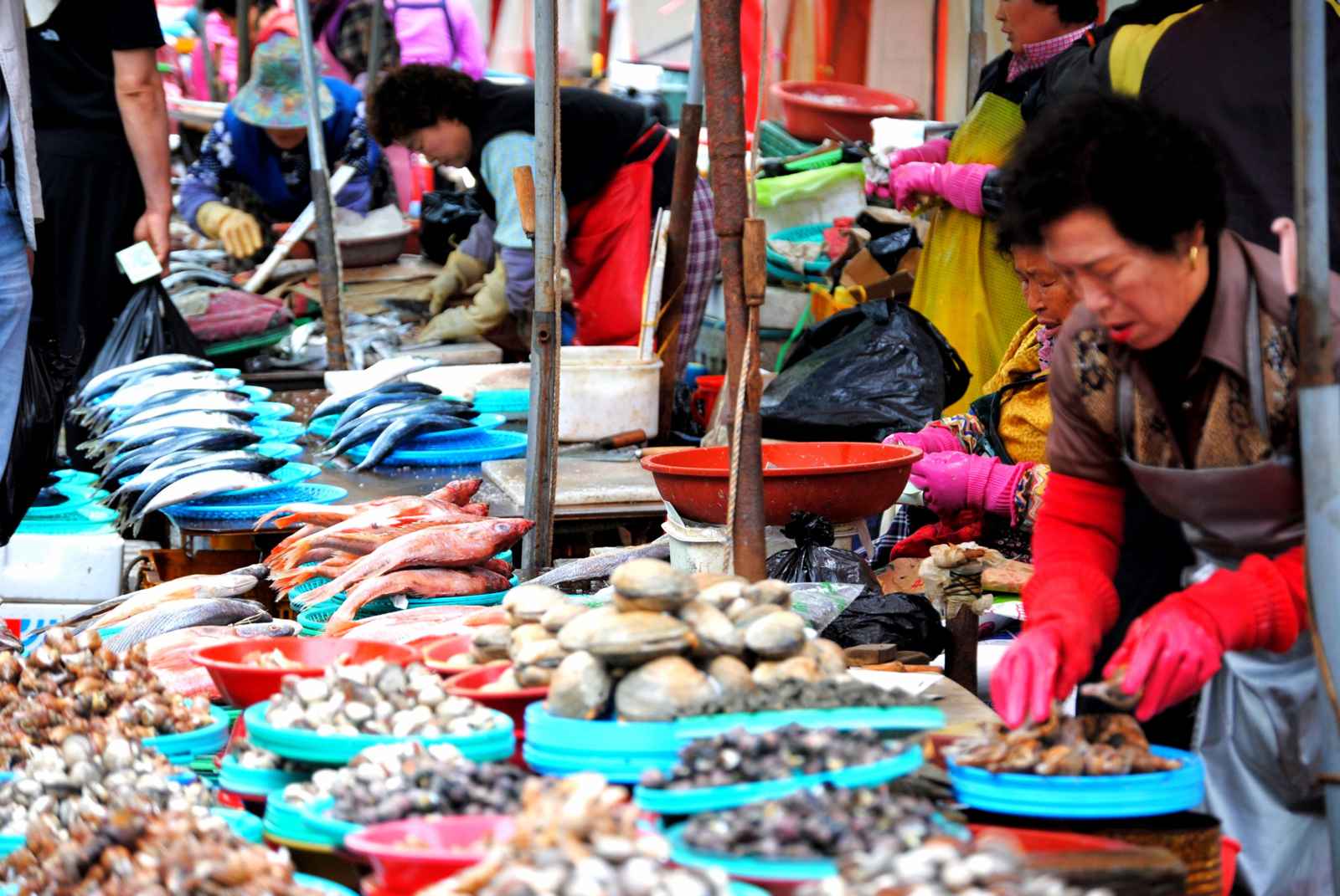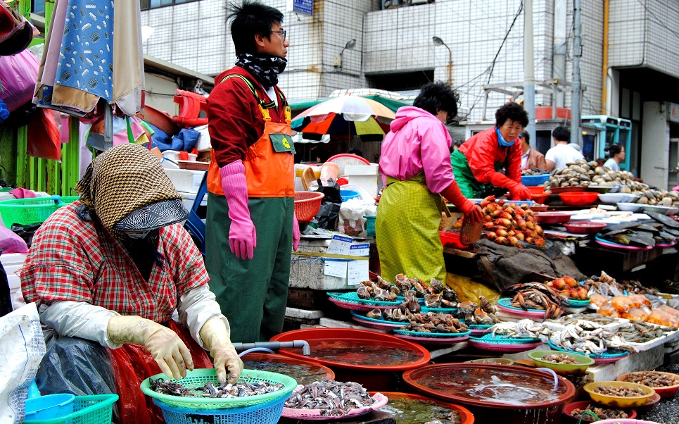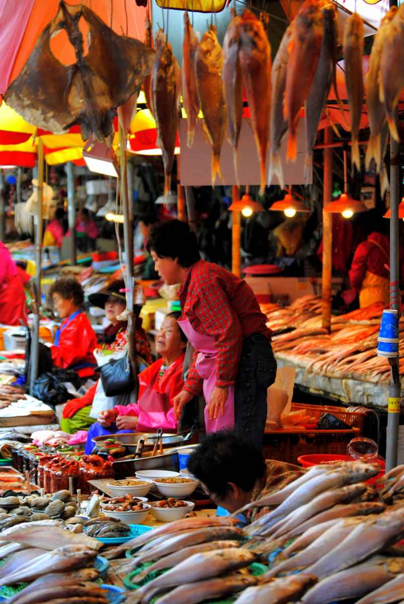... Um item da pastelaria coreana com recheio de feijão vermelho adocicado bem gostoso. Ele é tradicional da cidade, mas é possível achá-lo por todo o país. De lá, partimos para Busan onde vivemos alguns dos momentos mais interessantes da nossa visita ao país. Visitamos o tradicional mercado do peixe que começa bem cedinho e tem todos os tipos de peixes e frutos do mar que você possa imaginar.