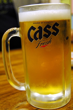 Também provamos a Cass, em sua apresentação draft. Esta é a quarta cerveja mais vendida na Coréia e tambem é muito saborosa.
