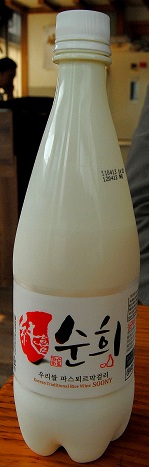 Ela é o motivo da alegria dos coreanos à noite. Trata-se de uma bebida destilada, que lembra muito a vodka, porém bem mais doce devido à grande quantidade de açúcar adicionado em seu preparo. A maioria dos coreanos bebem o Soju puro, mas há quem goste de misturar e fazer drinks. Nós provamos puro mesmo! Eu fiquei só no primeiro copo, já que não curto destilado, já o Gustavo... Ficou no segundo, terceiro, quarto... E, se você quiser saber o fim desta experiência... Pergunte a ele como foi kkkkkkkk!!! O tradicional vinho de arroz coreano também entrou na roda esta vez...