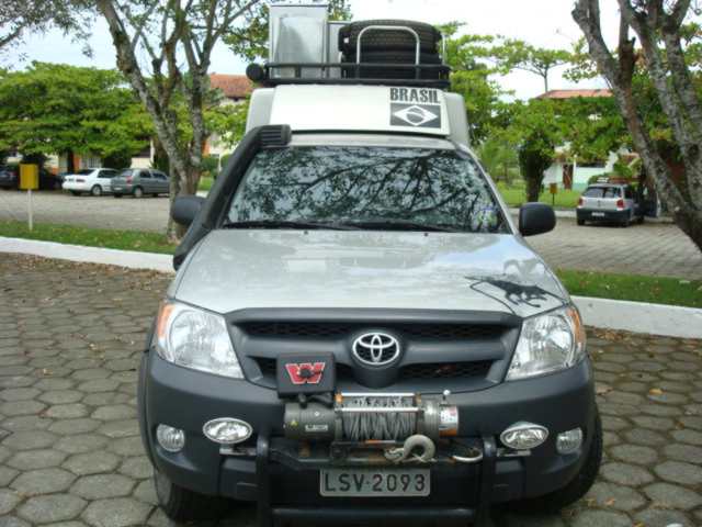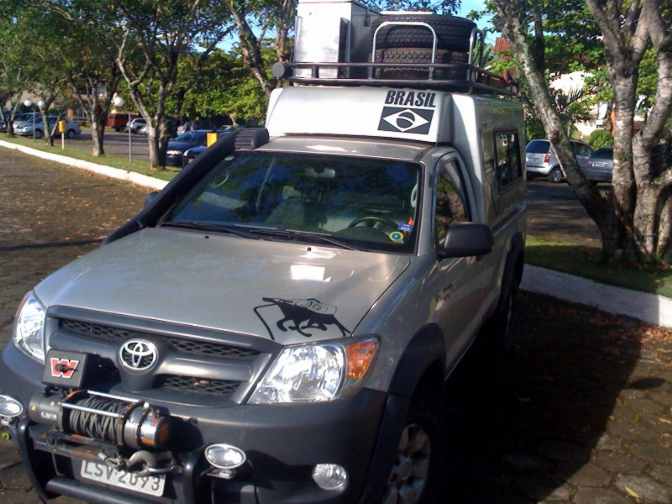 ...galão de inox de 40 litros na frente do baú, faróis de milha e de neblina...