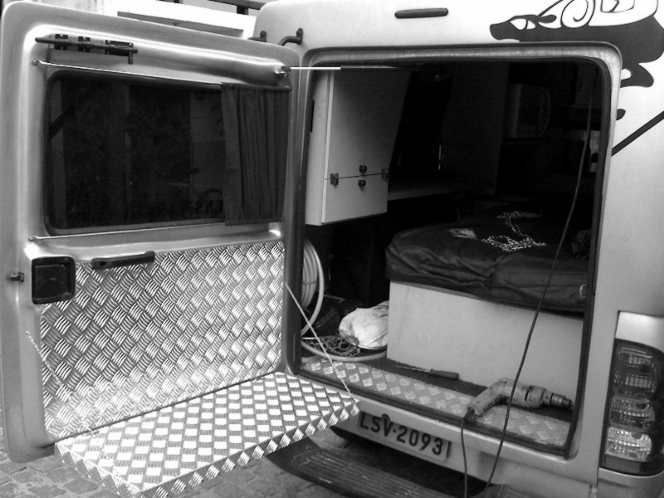 ... galão de inox de 30 litros na traseira e tubo para guardar a armação da tenda...