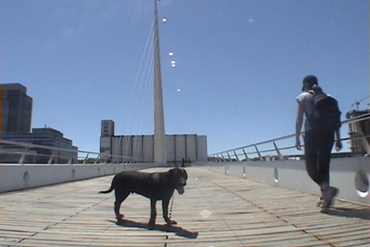 | "Tem uma ponte linda no cais do Puerto Madero." |